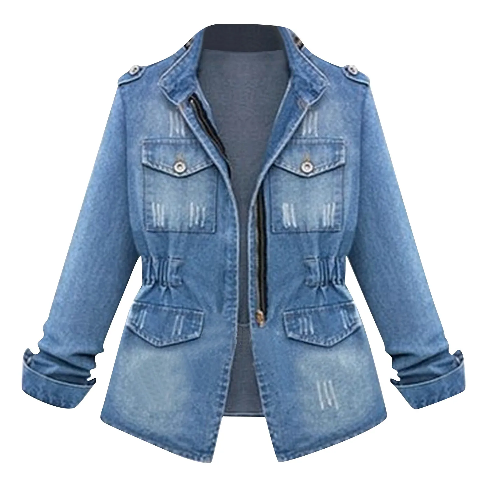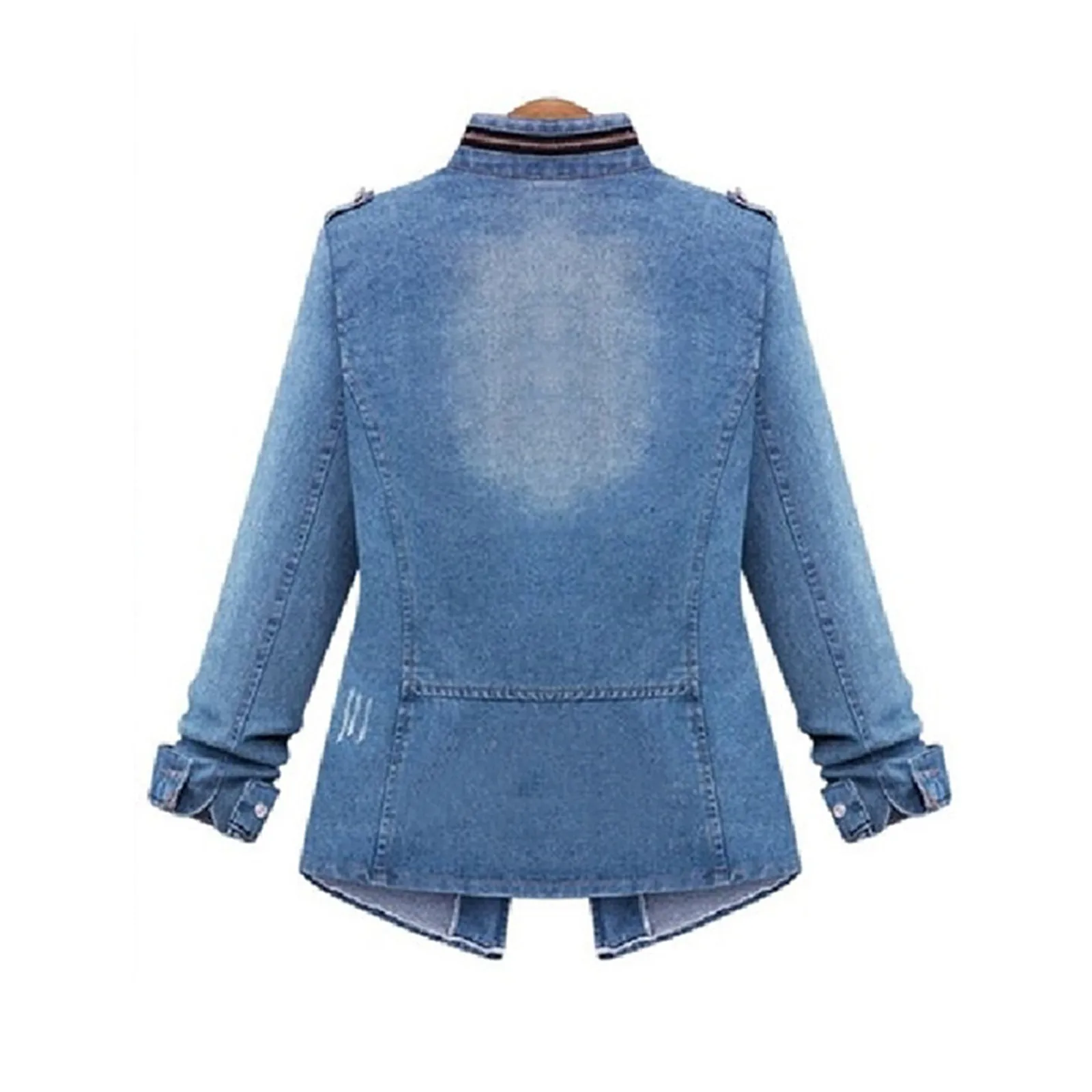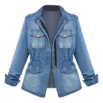 Women’s Panel Denim Jacket Ladies Leopard Print Patchwork Jean Jacket With Long Sleeves