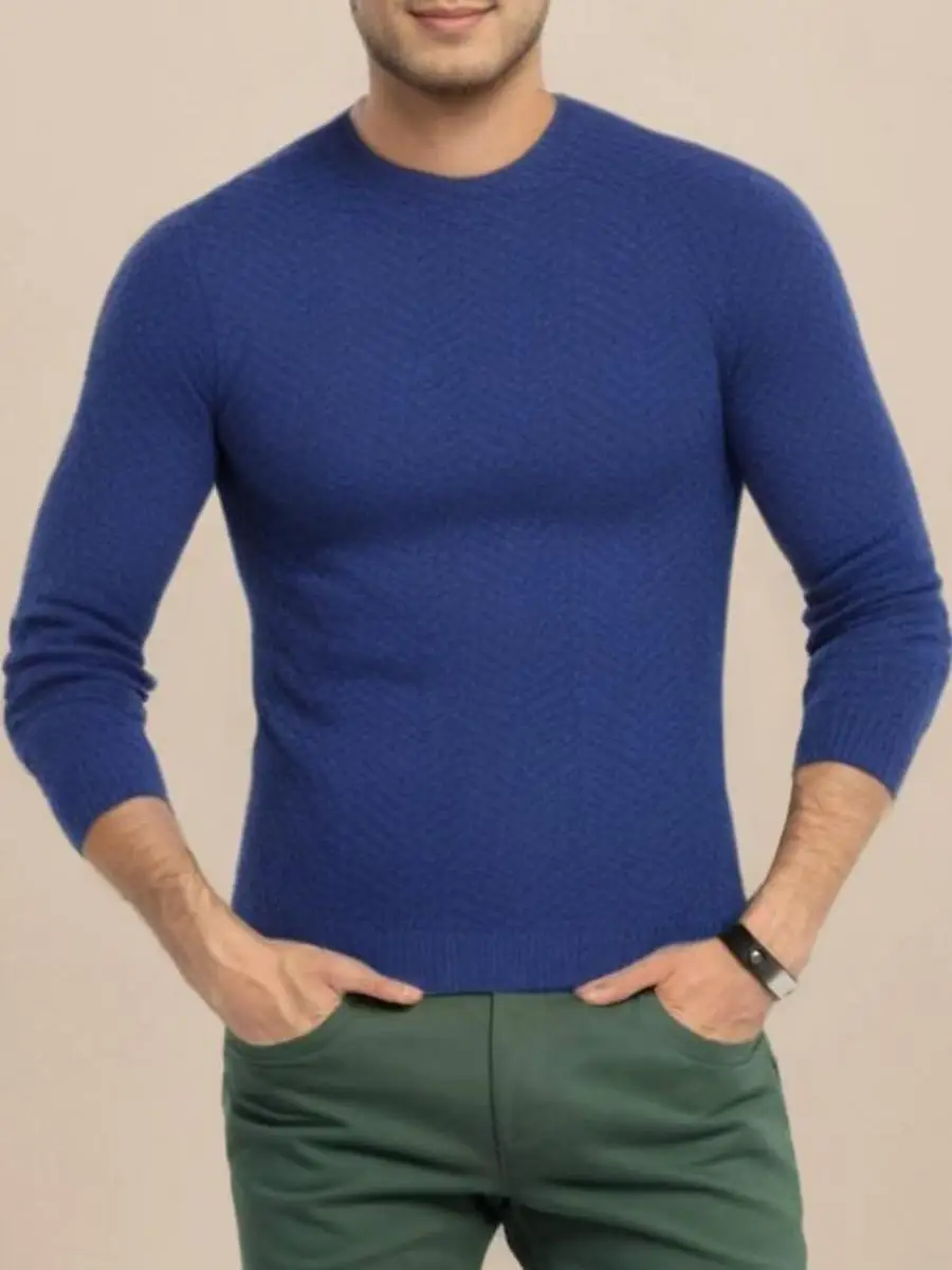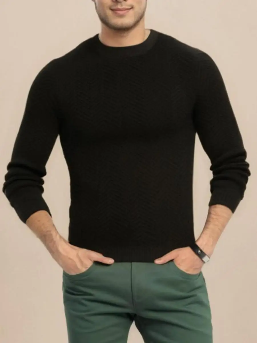 Men's Crew Neck Textured Pullover Sweater, Long Sleeve, Comfortable and Warm, Classic Design for Fall and Winter
