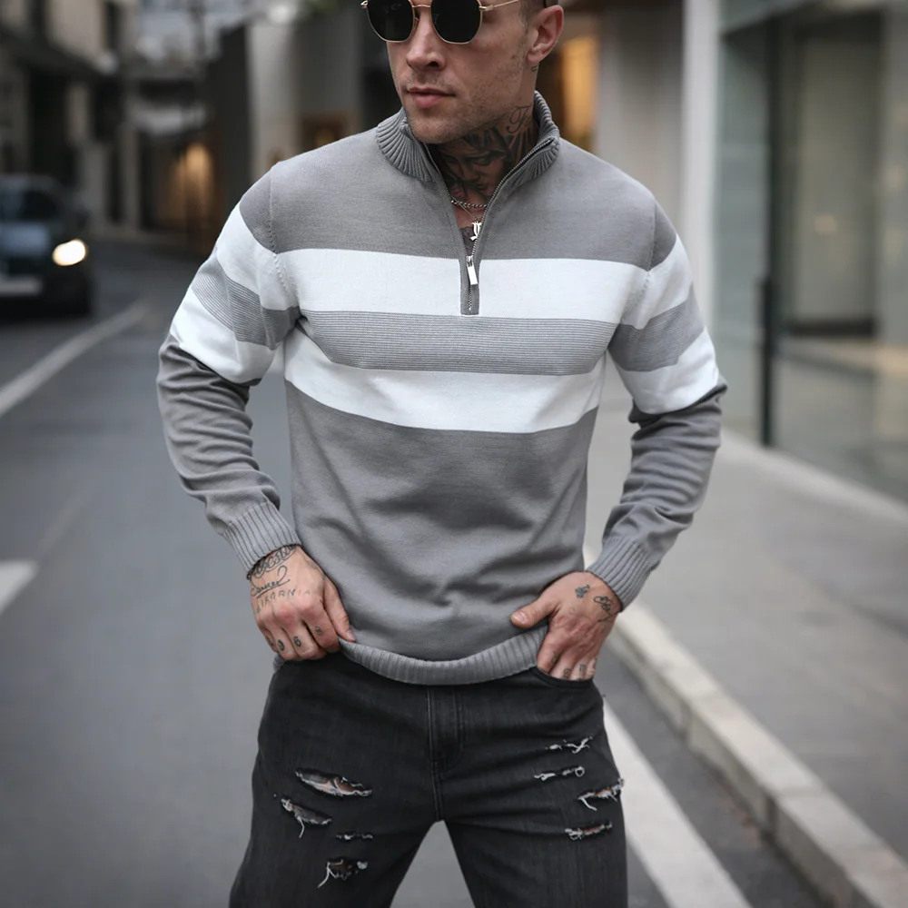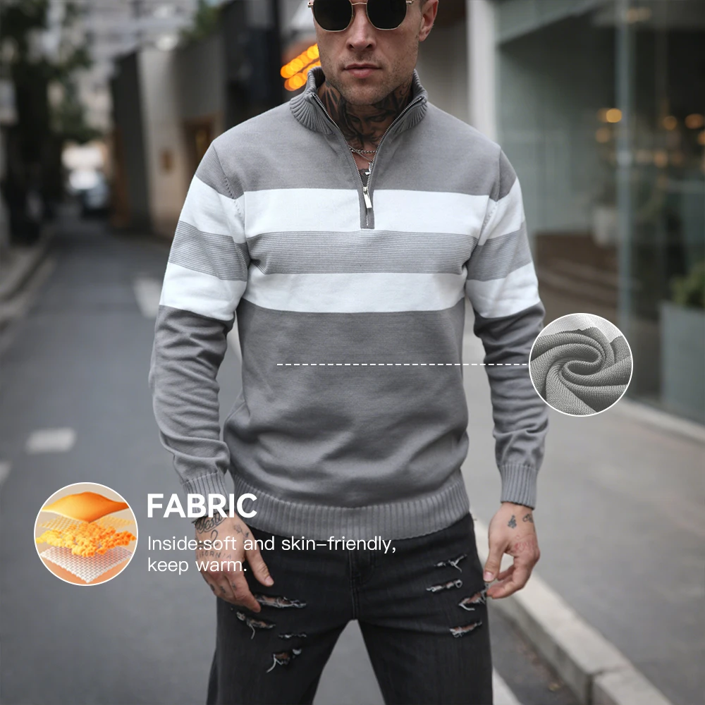 Men's Sweater Spring Stand-up collar zipper Sweater Knitted Lightweight Soft Long Sleeve Pullover Knitted Casual Tops US Size
