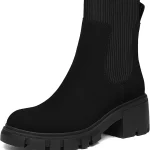 Athlefit Women’s Chelsea Platform Ankle Boots Chunky Combat Non-Slip Lug Sole Booties
