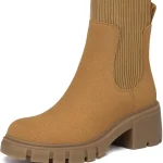 Women’s chelsea casual ribbed chunky heel booties pull off a perfectly graceful look with any in your wardrobe