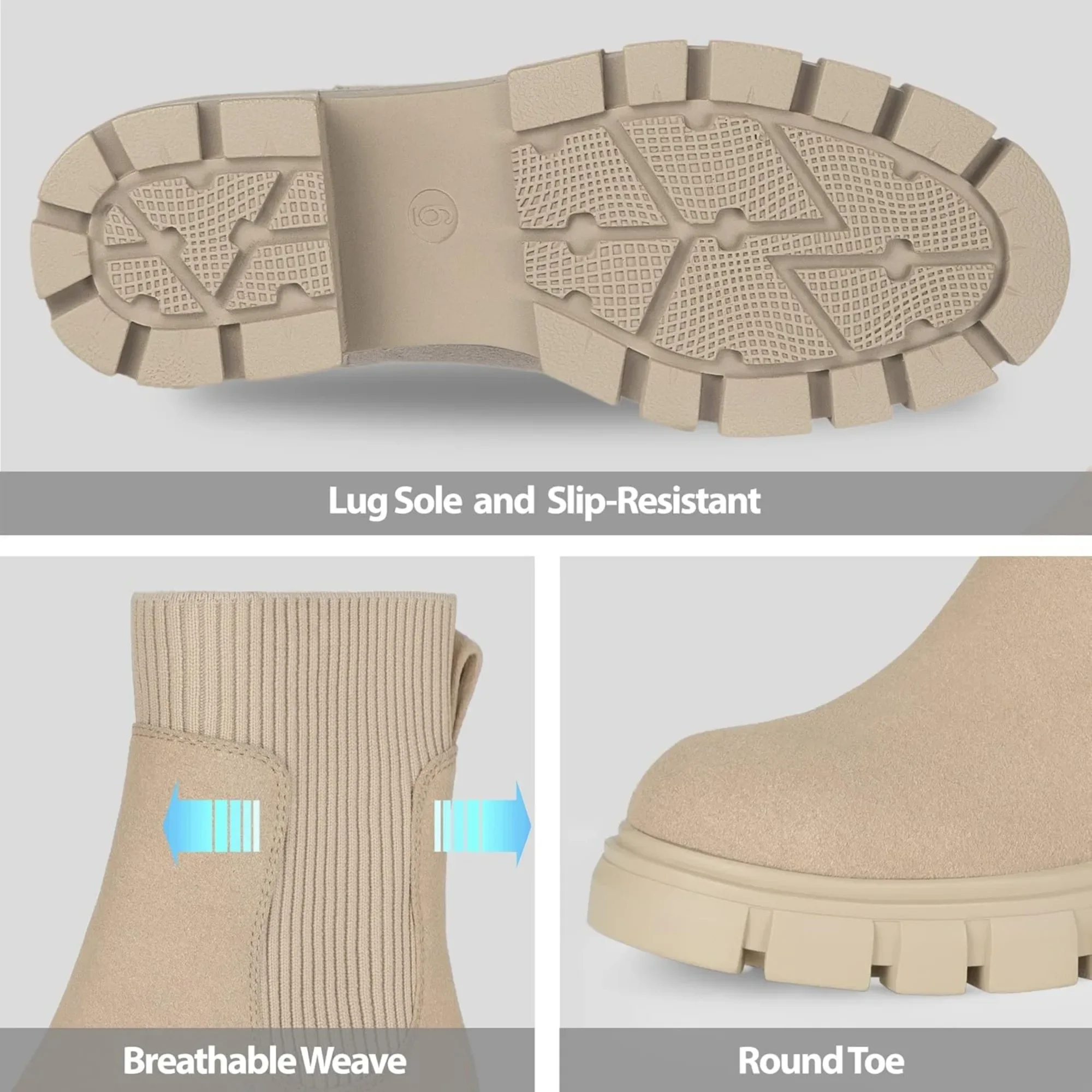 NON-SLIP: These fashion lug soles boots have excellent support and grip, reduce impact relieve foot and leg fatigue, and maintain stability in every step.
