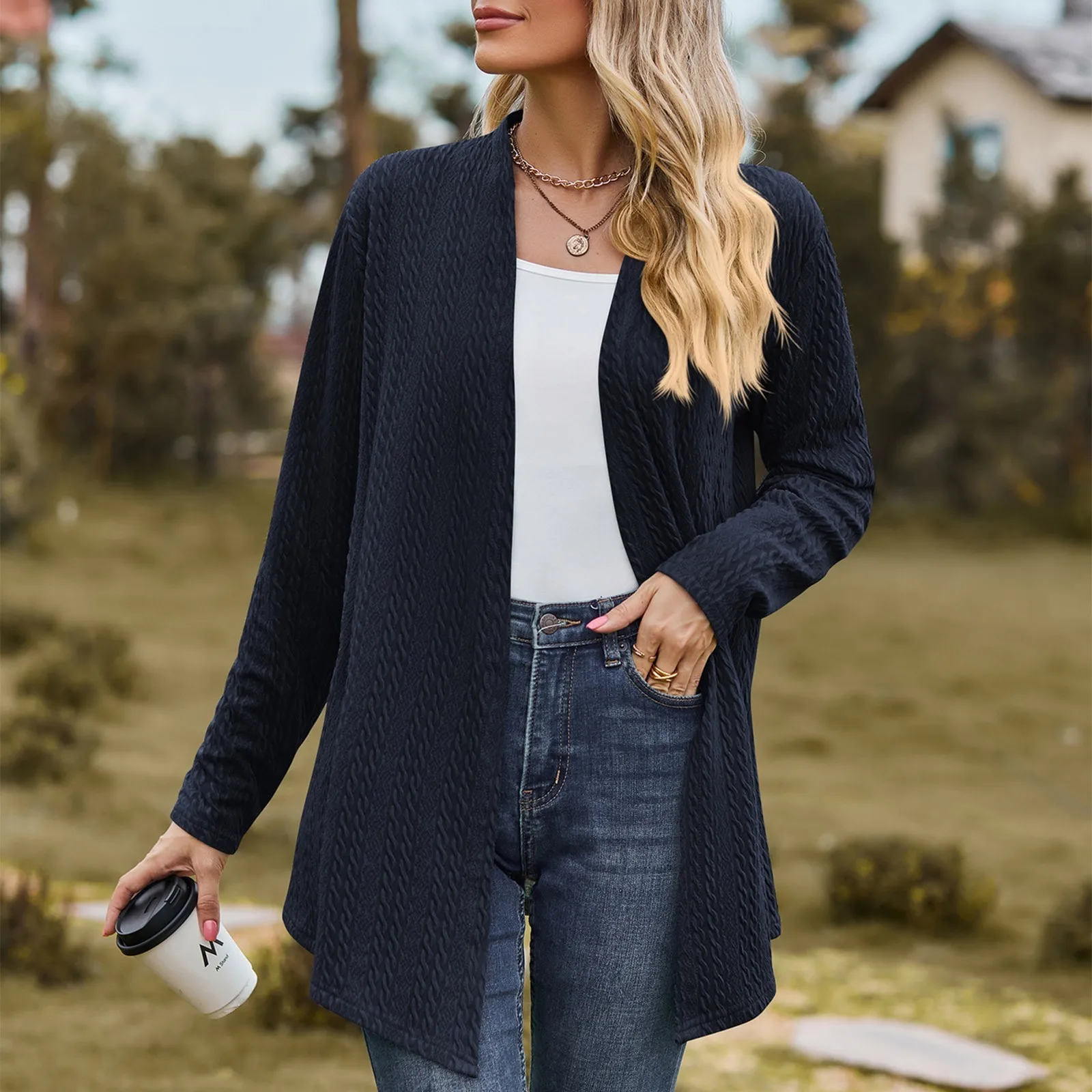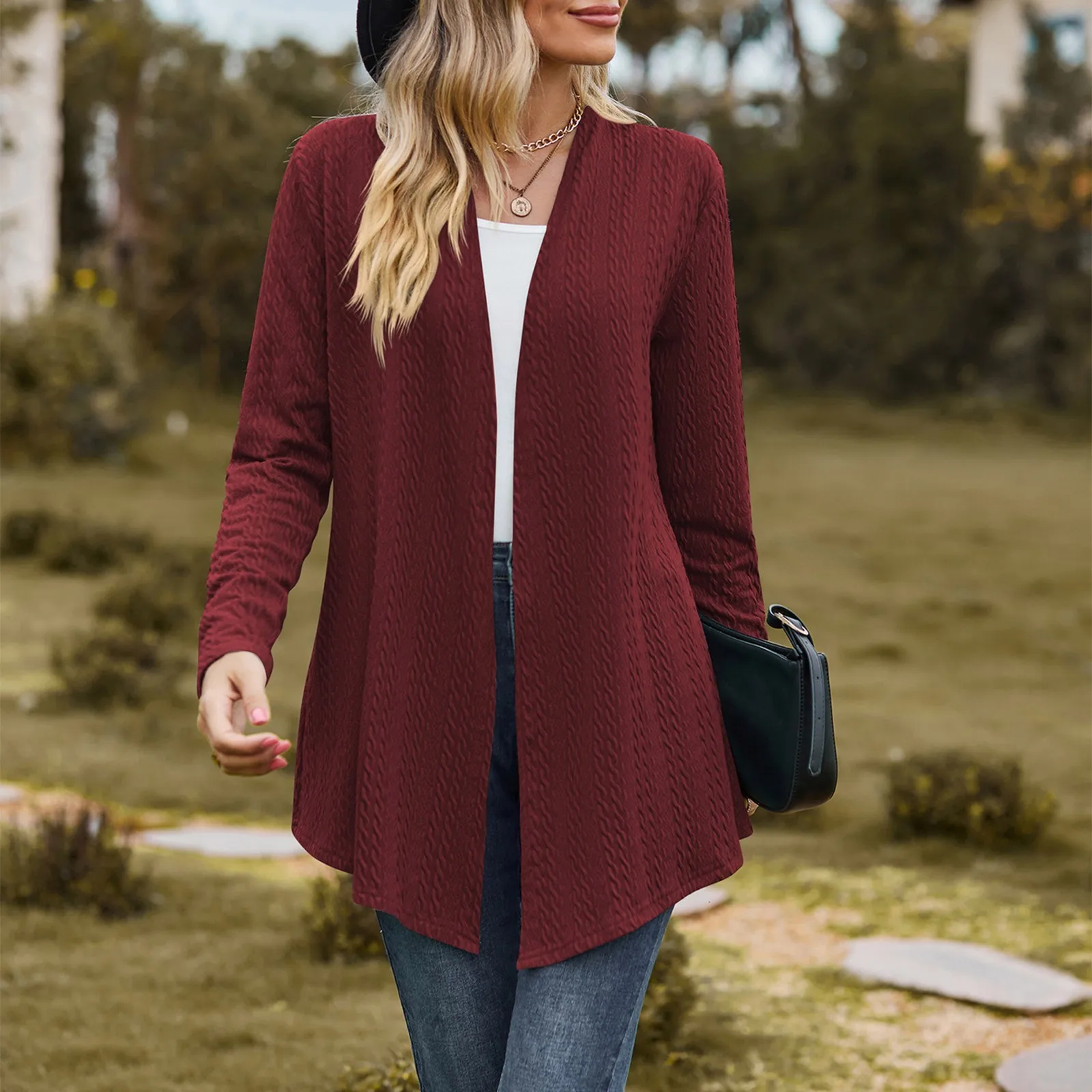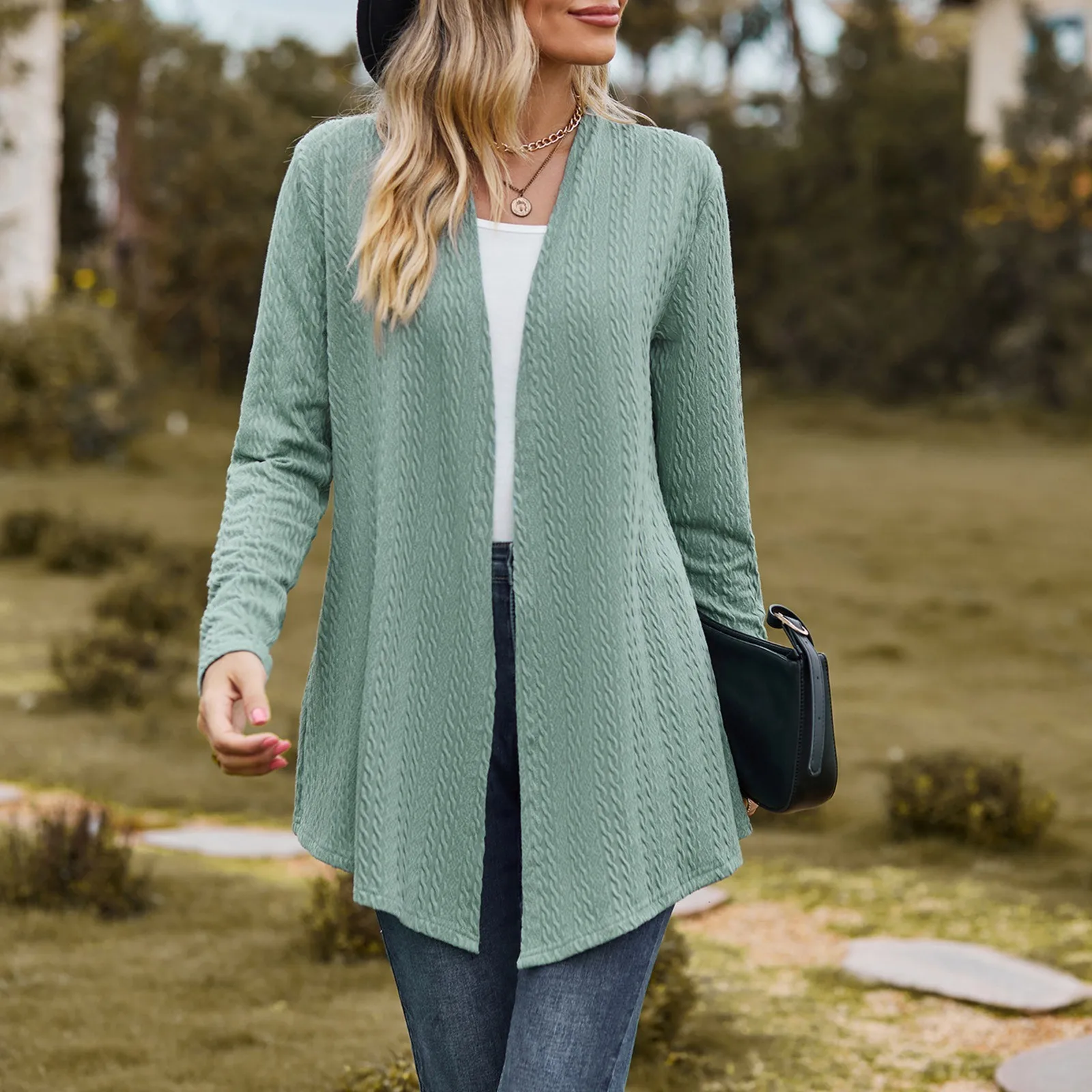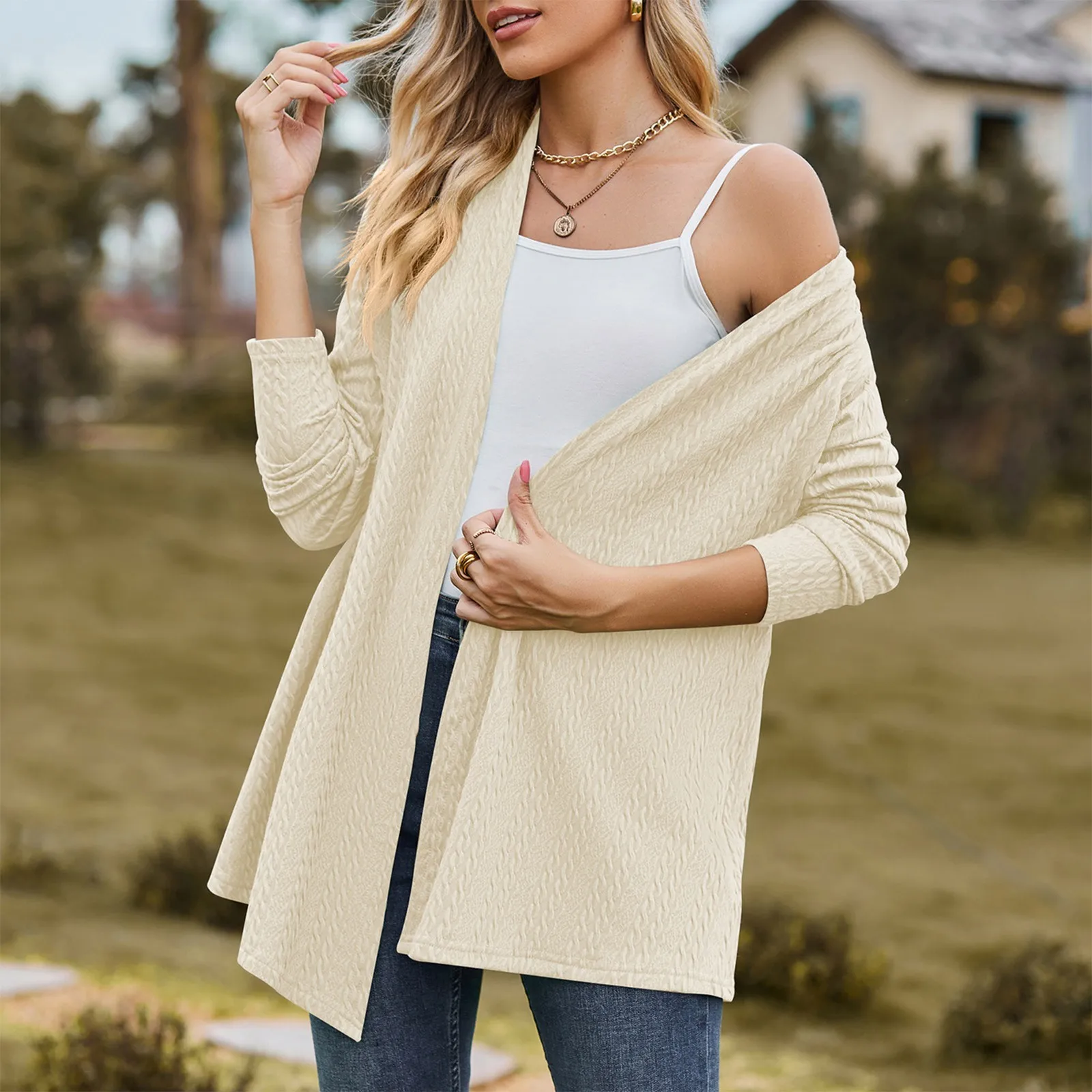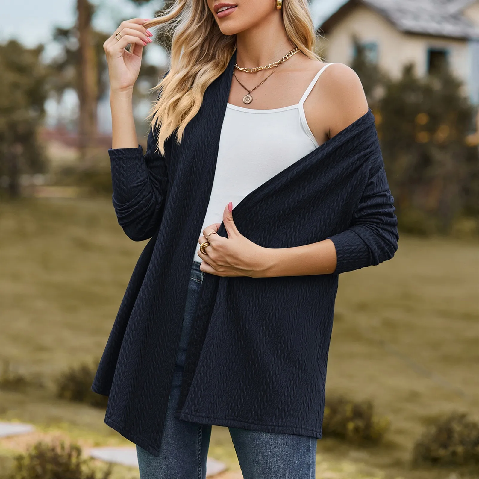 Women’s Fashion Solid Color Long Sleeve Loose Cardigan Jacket